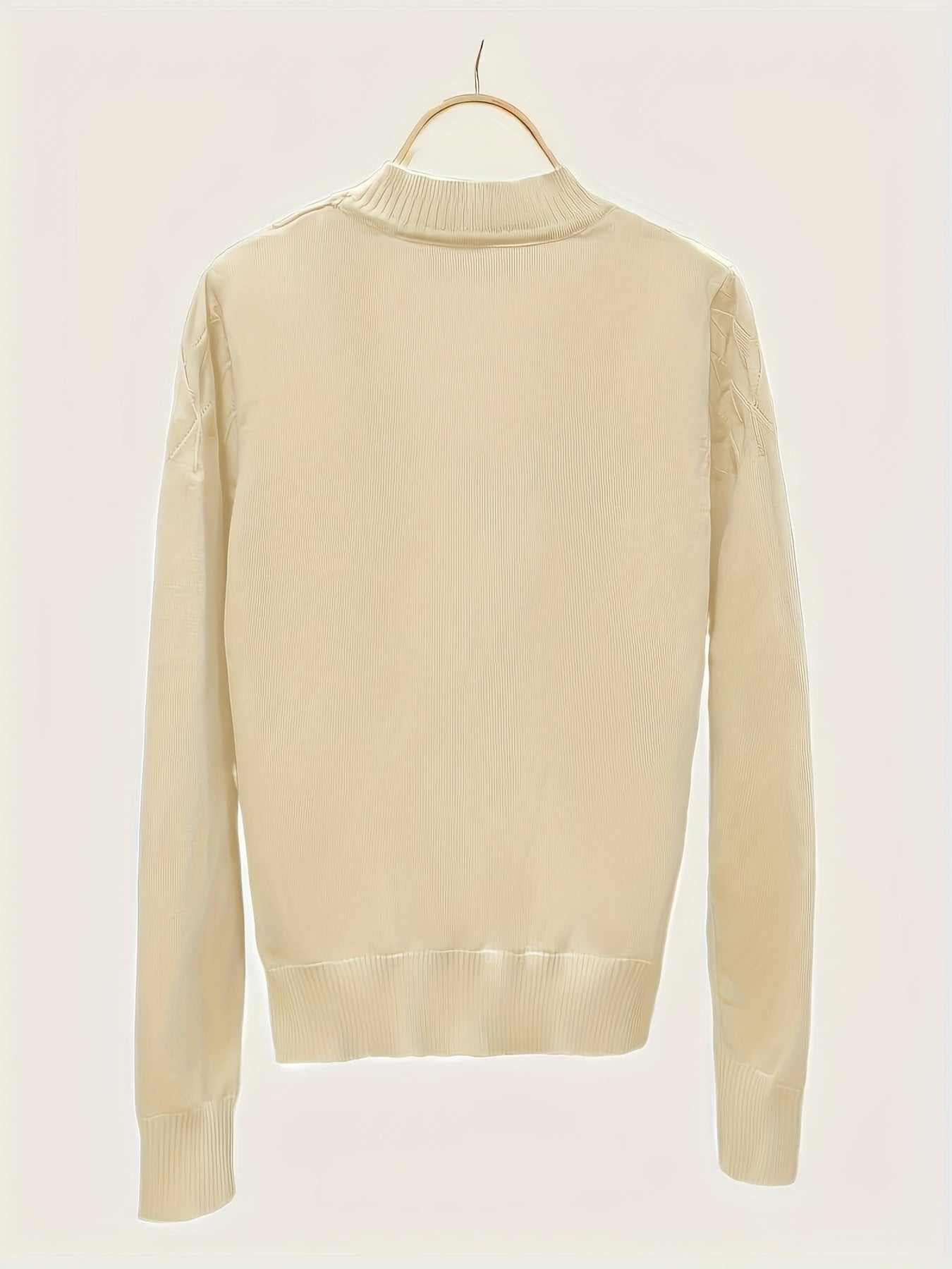 This sweater brings fresh vibrance to cool days with its refined pattern and clean structure. Designed for effortless elegance, it balances comfort and confidence, making it ideal for casual outings, office looks, or layering under your favorite coat. A piece that brightens any outfit with modern, polished charm.