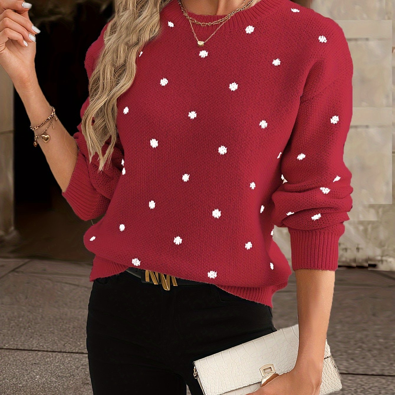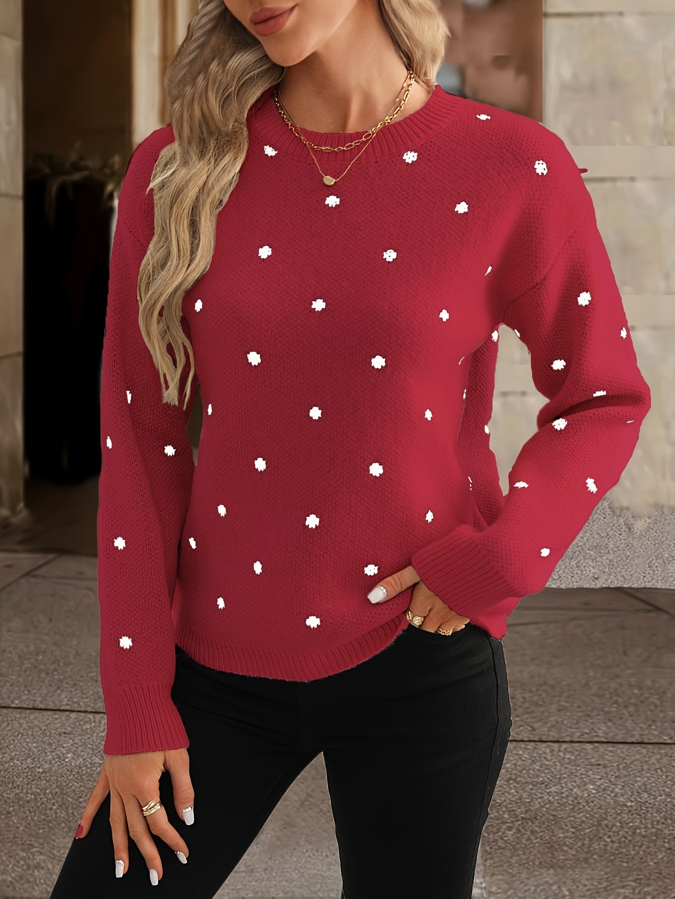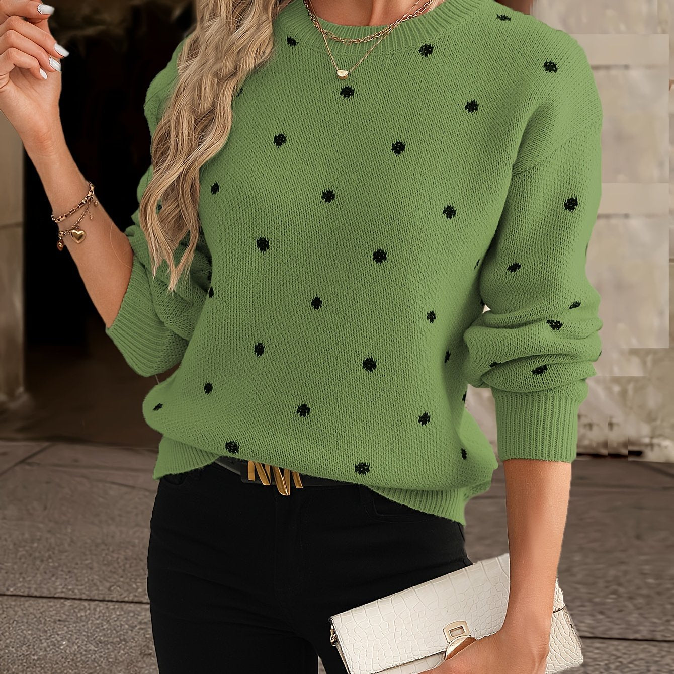 This beige polka-dot sweater adds a playful twist to refined style. Designed for easy elegance, it combines a soft, relaxed fit with a timeless neutral palette that transitions seamlessly from casual mornings to evening outings, offering both comfort and understated sophistication for your everyday wardrobe.